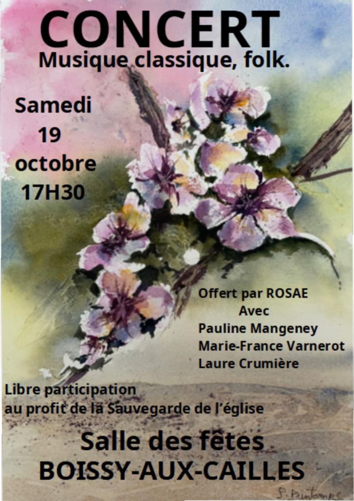 Bonjour à tous, J’espère que vous allez bien ! Retenez la date du 19/10 prochain car je vais donner un concert pour la Sauvegarde de l’Eglise de Boissy-aux-cailles (77760) accompagnée par plusieurs invités. Cela va être très beau et créatif : je vais entrecroiser mes chansons avec de la musique classique et de la poésie.…