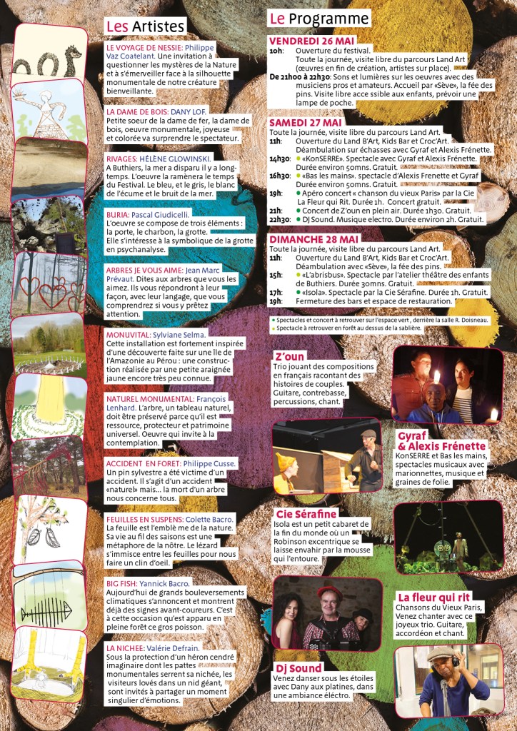 Si le temps est clément, j’aurai la joie de chanter mes chansons dans la forêt au côté de l’oeuvre « Arbres, je vous aime » de Jean-Marc Prévault lors du Festival Land Art le vendredi 26 mai entre 21h et 22h30.